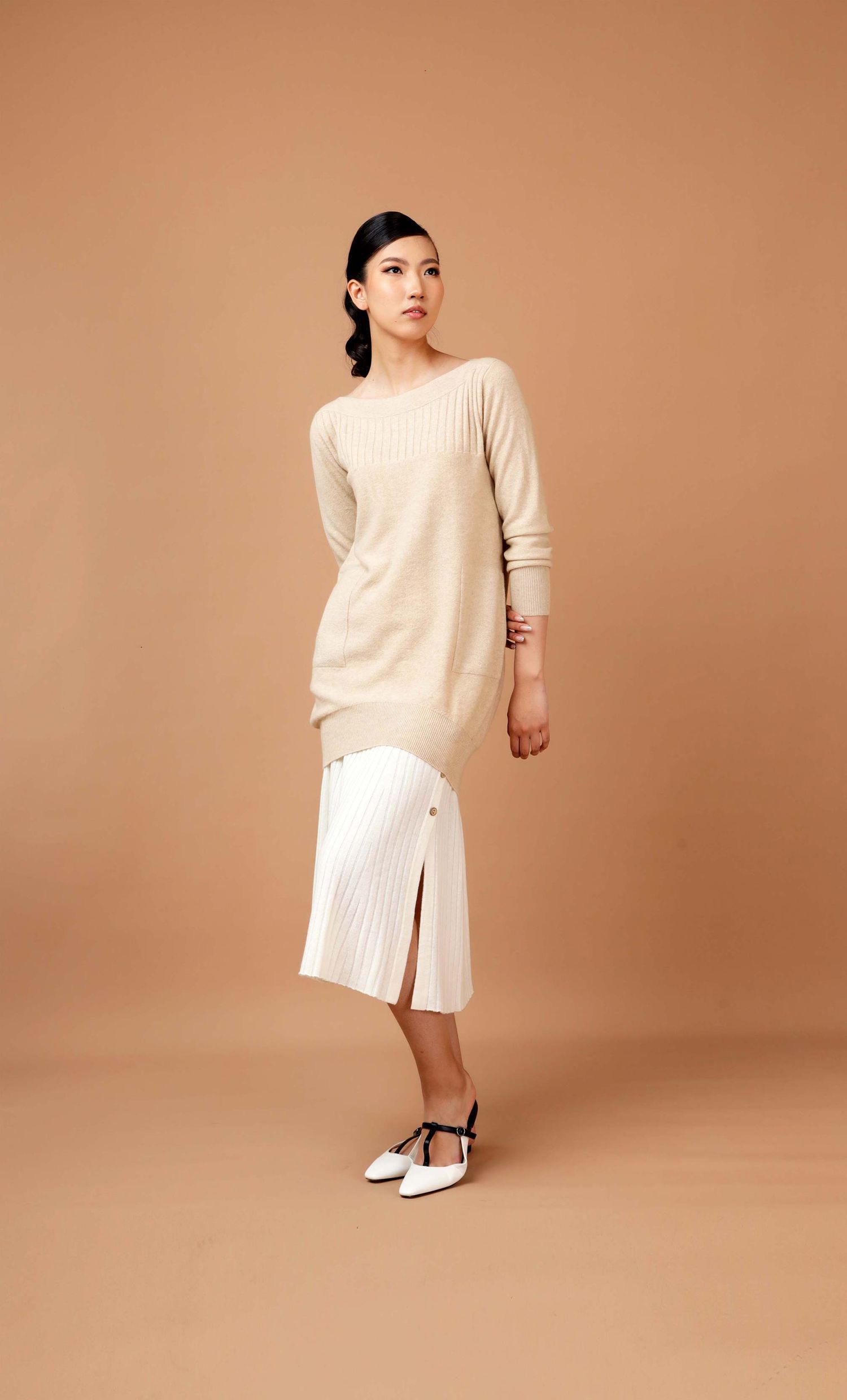 Дугуй захтай, энгэртээ туузтай, дээд талдаа судалтай, доошоогоо буруу хирамэ сүлжээстэй, урт ханцуйтай, шулуун залгаа